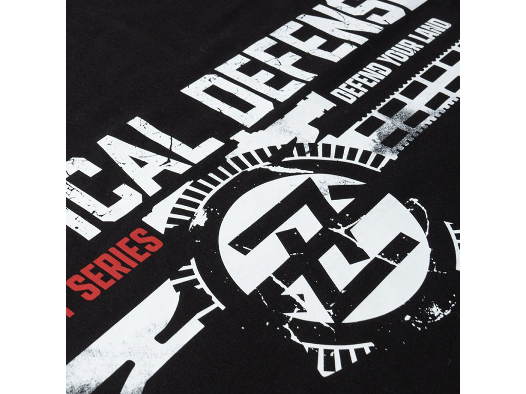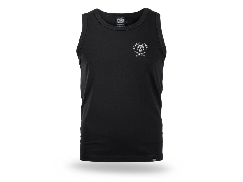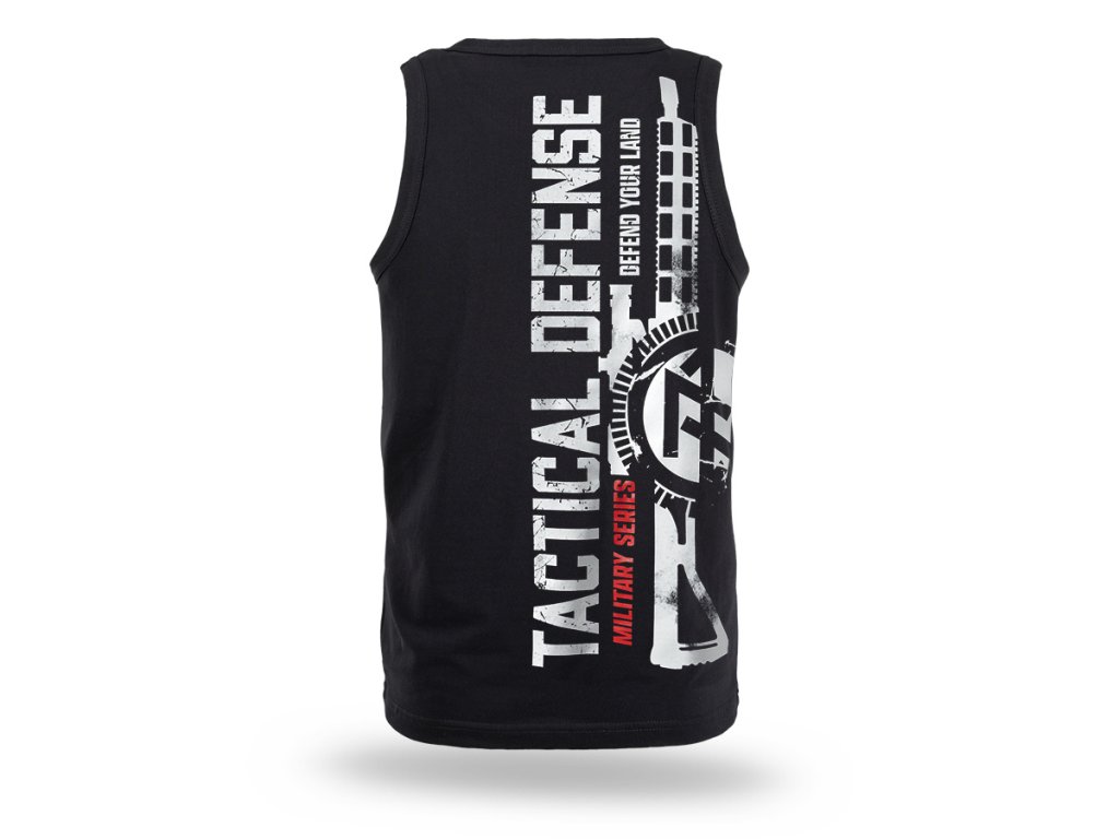 Model bez rukávů vyrobený z kvalitního, na dotek příjemného materiálu, který zajišťuje pohodlí a volnost pohybu. Klasický kulatý výstřih a pečlivě zakončené průramky dobře sedí na postavě. Na hrudi se nachází decentní grafika s motivem lebky a zkřížených zbraní a nápisem „Tactical Defense“. Zadní část zdobí velká, výrazná grafika v militárním stylu s vertikálním nápisem „TACTICAL DEFENSE“, sloganem „DEFEND YOUR LAND“ a označením „MILITARY SERIES“. Celkový design podtrhuje taktický a vojenský charakter.