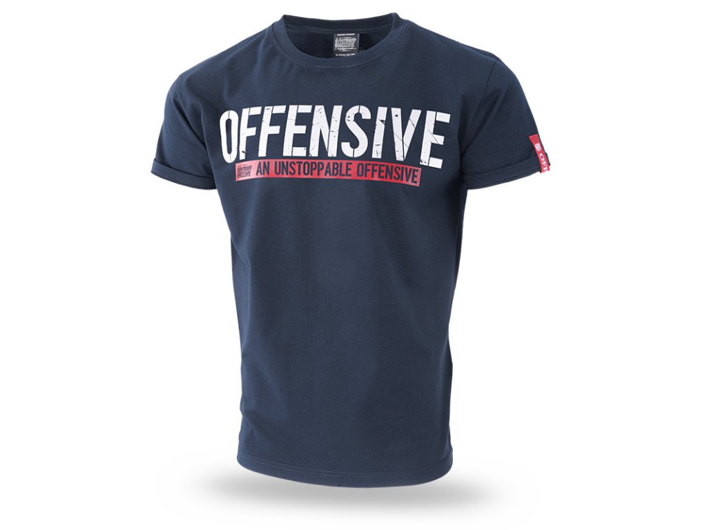 Na levém rukávu je všitá velká červená cedulka s nápisem Offensive. Tričko zdobí jednoduchý stylem, ale velice charakteristický velký potisk - OFFENSIVE, pod kterým se nachází ještě menší nápis na červeném pozadí An Unstoppable Offensive.Tričko je dostupné v mnoha barevných provedeních.