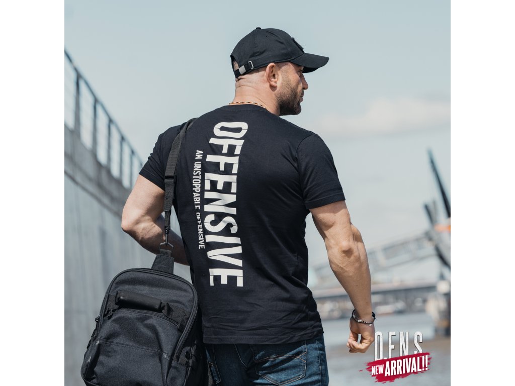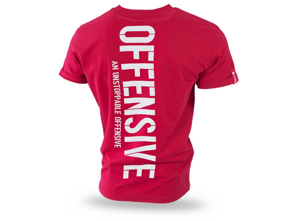 Tričko s velkým potiskem "Offensive An Unstoppable Offensive" na celé linii zad. Tričko je zakončené širokým stahovacím lemem u krku a červenou cedulkou u rukávu s logem značky. Na přední straně v linii klíční kosti je nevelký potisk z kolekce Offensive Premium.Tričko je dostupné v několika barvách v jednobarevném vzoru.
