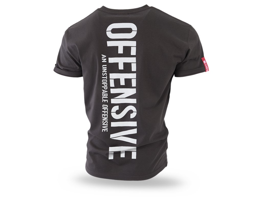Tričko s velkým potiskem "Offensive An Unstoppable Offensive" na celé linii zad. Tričko je zakončené širokým stahovacím lemem u krku a červenou cedulkou u rukávu s logem značky. Na přední straně v linii klíční kosti je nevelký potisk z kolekce Offensive Premium.Tričko je dostupné v několika barvách v jednobarevném vzoru.