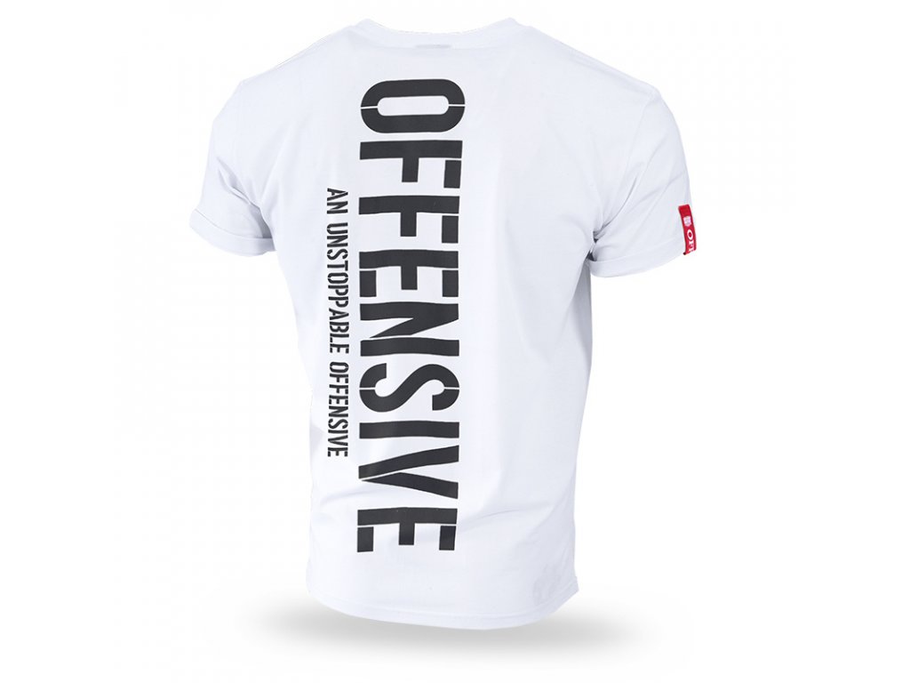 Tričko s velkým potiskem "Offensive An Unstoppable Offensive" na celé linii zad. Tričko je zakončené širokým stahovacím lemem u krku a červenou cedulkou u rukávu s logem značky. Na přední straně v linii klíční kosti je nevelký potisk z kolekce Offensive Premium.Tričko je dostupné v několika barvách v jednobarevném vzoru.