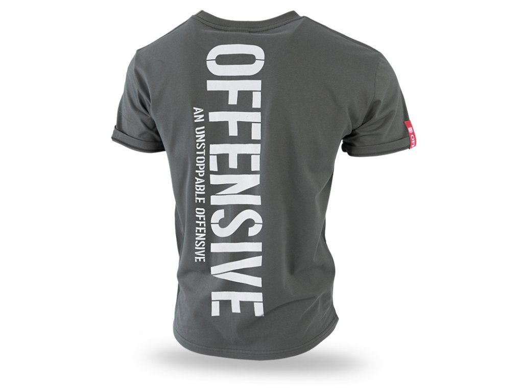 Tričko s velkým potiskem "Offensive An Unstoppable Offensive" na celé linii zad. Tričko je zakončené širokým stahovacím lemem u krku a červenou cedulkou u rukávu s logem značky. Na přední straně v linii klíční kosti je nevelký potisk z kolekce Offensive Premium.Tričko je dostupné v několika barvách v jednobarevném vzoru.