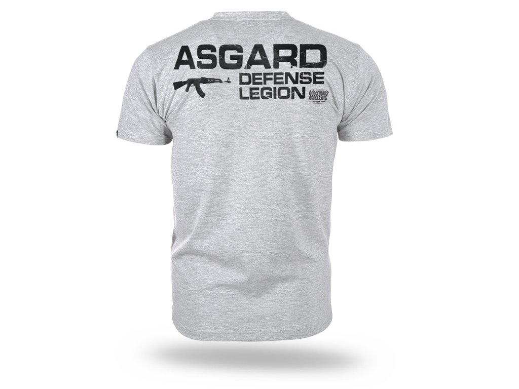 Vyrobeno z bavlny o vysoké hmotnosti. Na levém rukávu je našitá malá cedulka s logem značky. Na zadní straně trička se nachází nápis „Asgard Defense Legion”. Na text je namířená puška, vzor doplňuje logo značky Doberman’s, na přední straně je potisk v menším formátu.