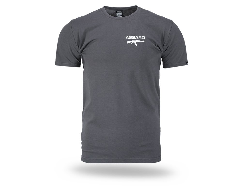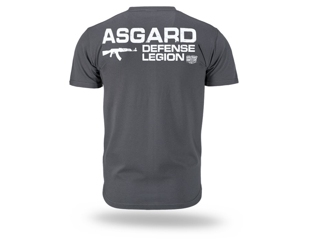 Vyrobeno z bavlny o vysoké hmotnosti. Na levém rukávu je našitá malá cedulka s logem značky. Na zadní straně trička se nachází nápis „Asgard Defense Legion”. Na text je namířená puška, vzor doplňuje logo značky Doberman’s, na přední straně je potisk v menším formátu.