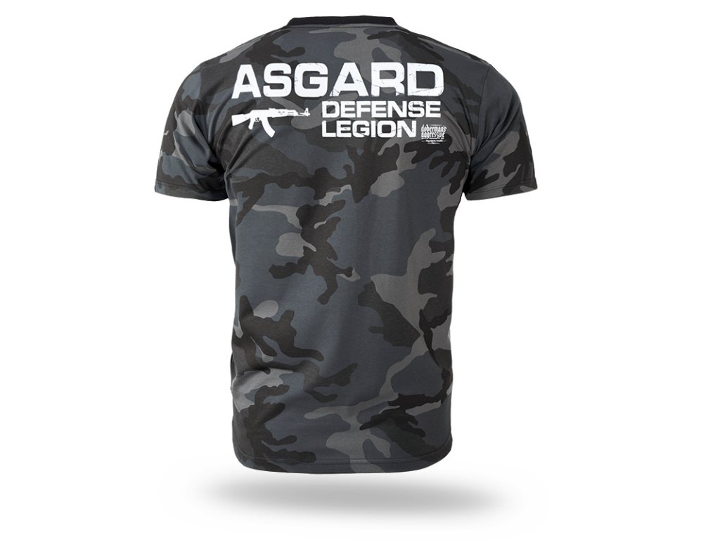 Vyrobeno z bavlny o vysoké hmotnosti. Na levém rukávu je našitá malá cedulka s logem značky. Na zadní straně trička se nachází nápis „Asgard Defense Legion”. Na text je namířená puška, vzor doplňuje logo značky Doberman’s, na přední straně je potisk v menším formátu.