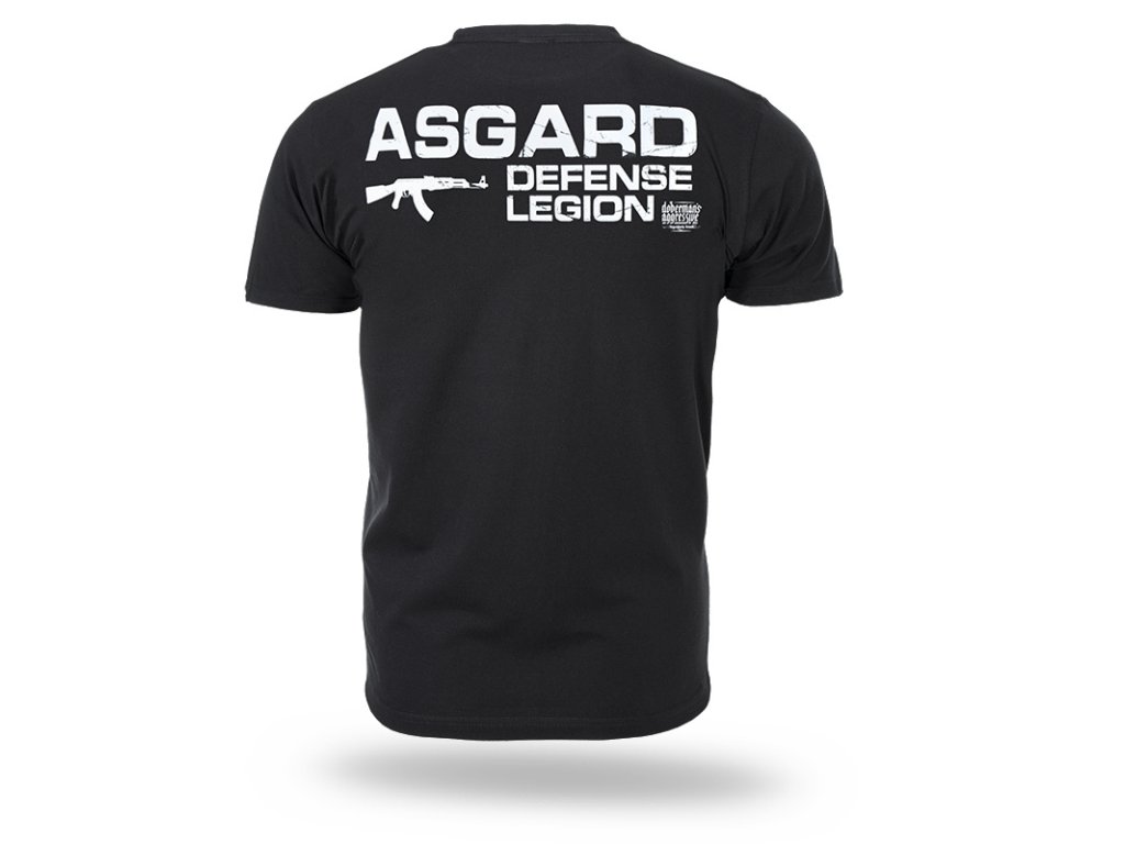 Vyrobeno z bavlny o vysoké hmotnosti. Na levém rukávu je našitá malá cedulka s logem značky. Na zadní straně trička se nachází nápis „Asgard Defense Legion”. Na text je namířená puška, vzor doplňuje logo značky Doberman’s, na přední straně je potisk v menším formátu.