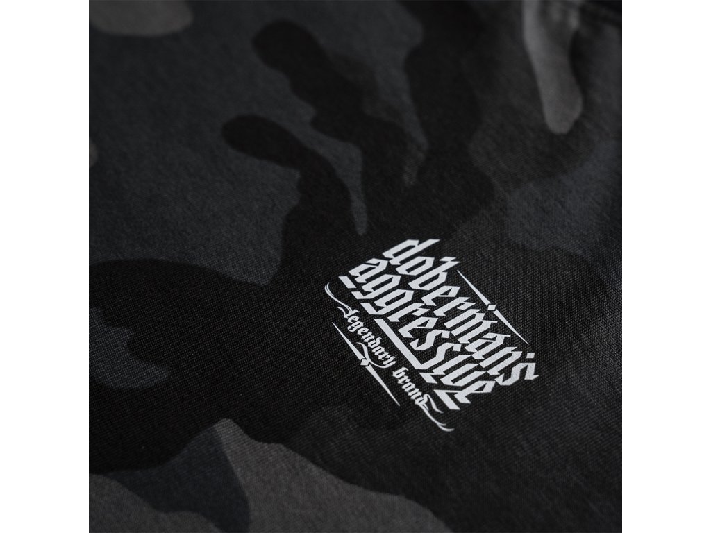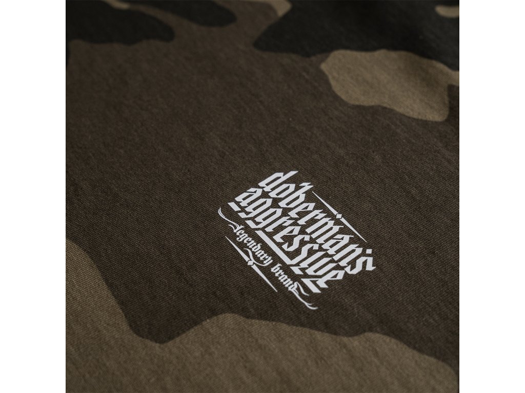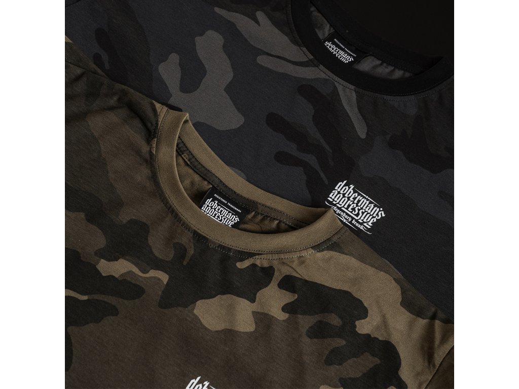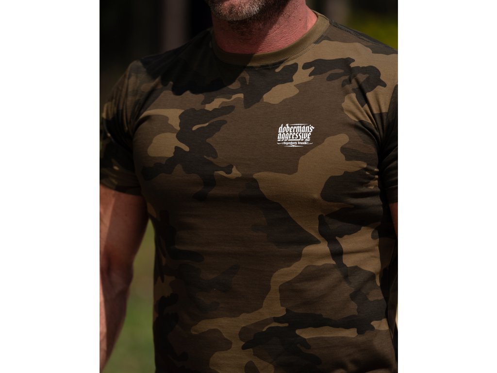 Oblečení je vyrobeno z bavlny o hmotnosti 200g. Na levém rukávu je malá cedulka s logem Doberman’s Aggressive. Na přední straně trička na levé straně hrudníku je malé jednobarevné logo značky Doberman’s.