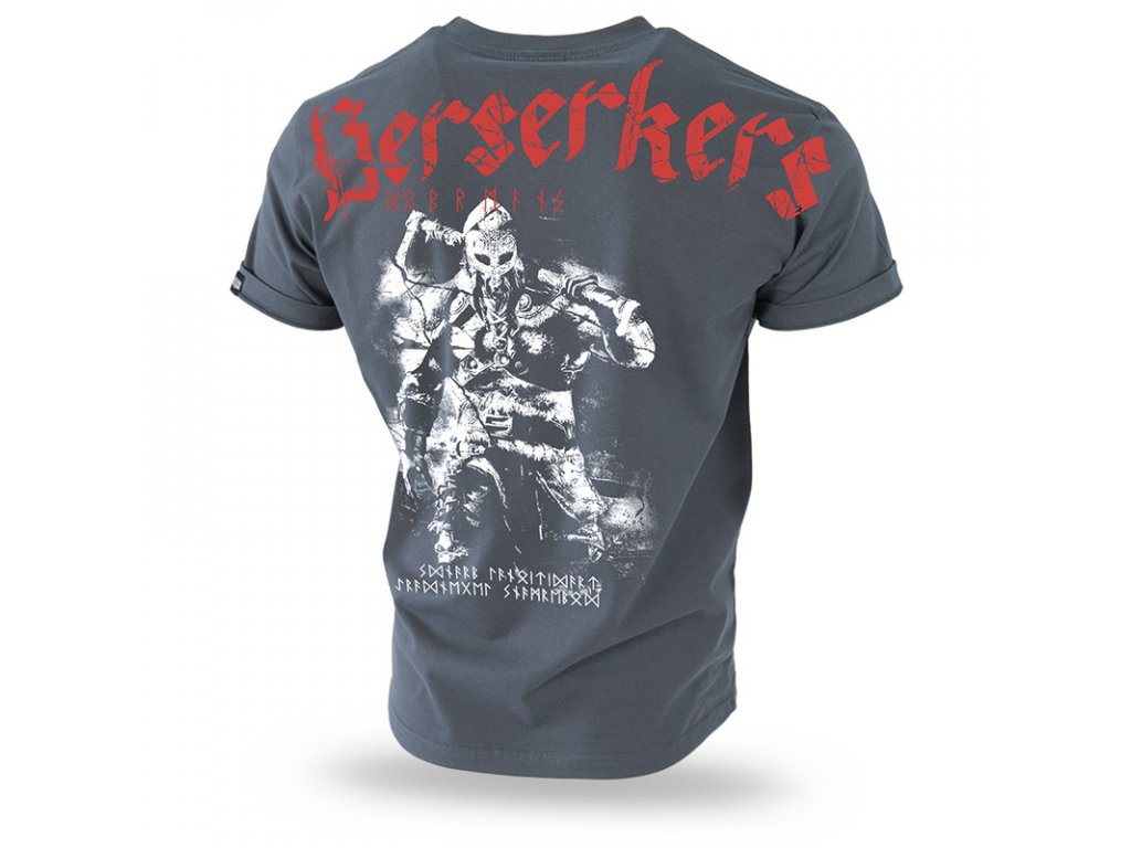 Tričko má klasický střih, materiál 100% bavlna, gramáž 200 g. Na přední části v okolí rukávu jsou vytištěny runové znaky. Na zadní straně trička potisk ve tvaru postavy, nápis Berserkers, který pokračuje přes švy rukávu a runové znaky. Potisk je téměř na celém tričku.
