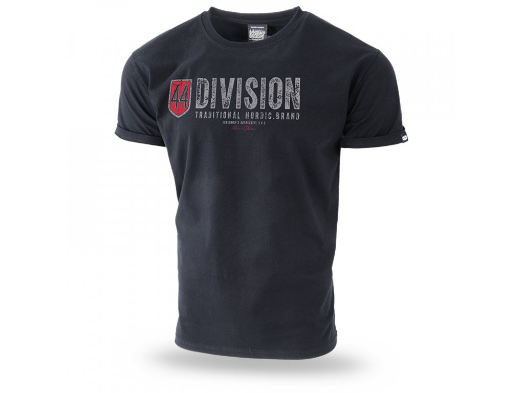Standardní střih, materiál 100% bavlna, gramáž 200g. Uprostřed na prsou potisk se štítem a klasický vzor Division 44. Vzadu na pravém rameni bezprostředně při švu vzor s názvem značky a napsaným textem Nordic Division.