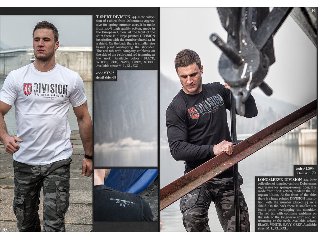 Standardní střih, materiál 100% bavlna, gramáž 200g. Uprostřed na prsou potisk se štítem a klasický vzor Division 44. Vzadu na pravém rameni bezprostředně při švu vzor s názvem značky a napsaným textem Nordic Division.
