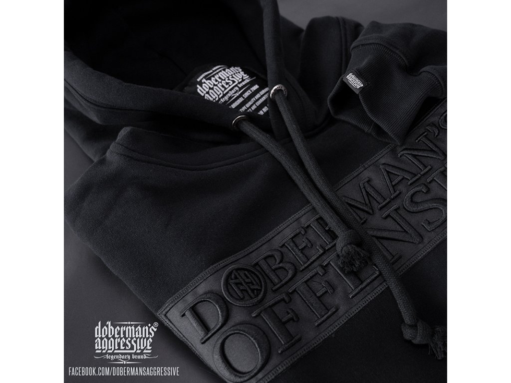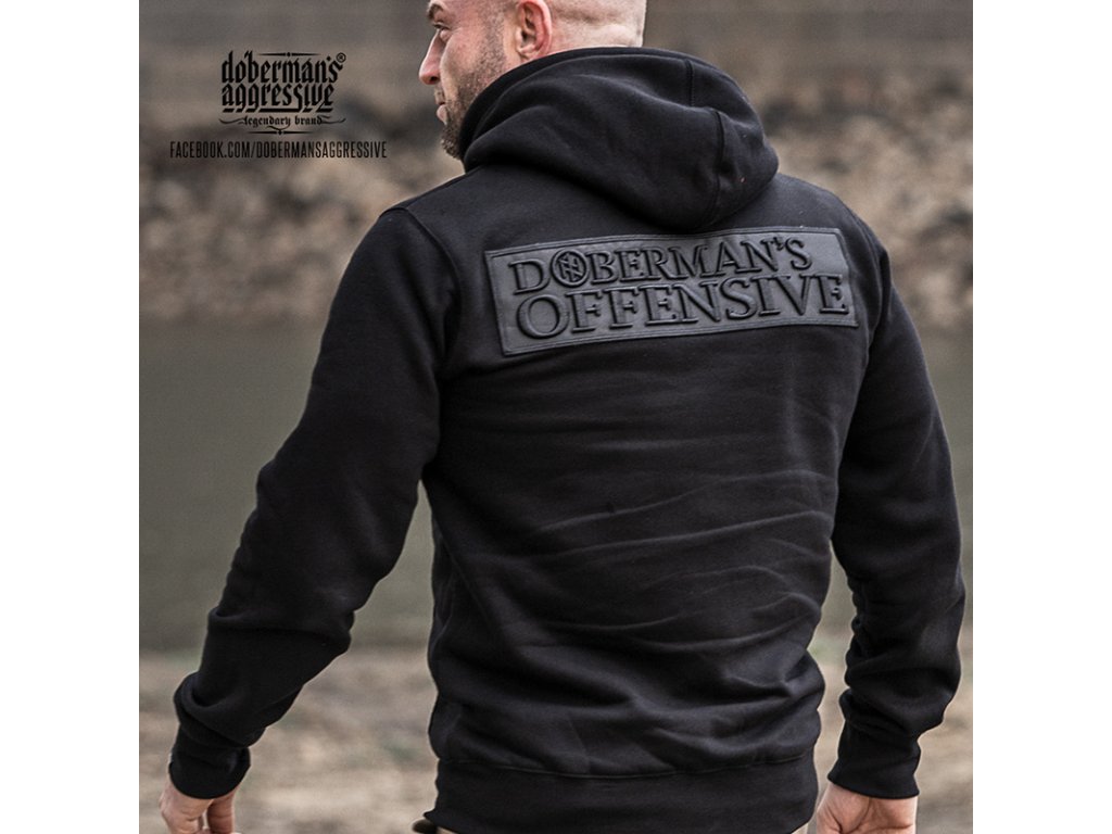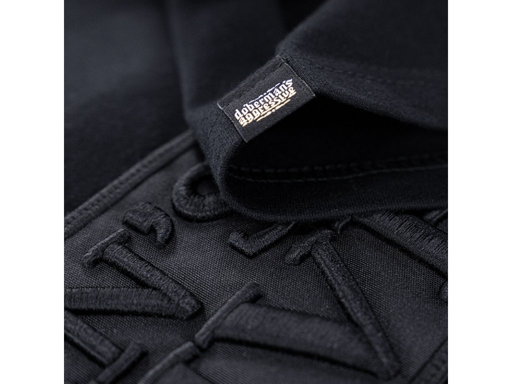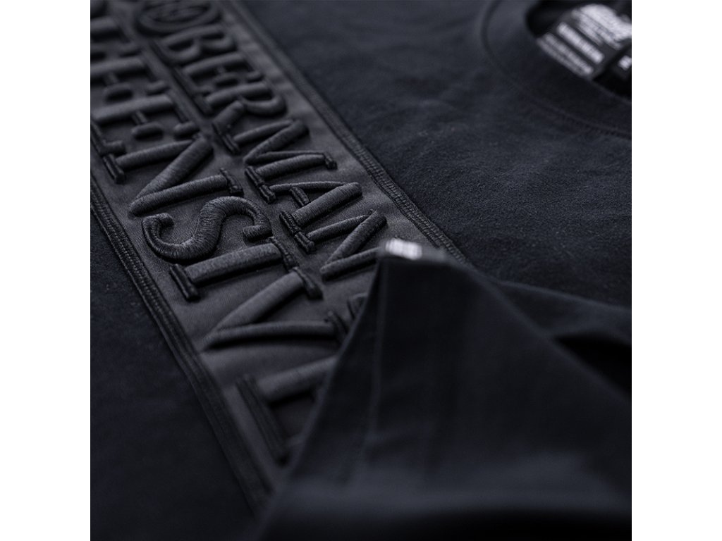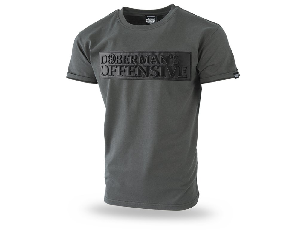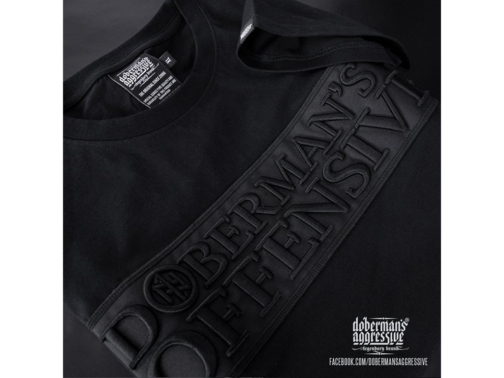 Na levém rukávu je malá cedulka s logem Dobermans Aggressive. Tričko pochází z řady Offensive Premium. Oblečení z této kolekce se vyznačuje klasickými vzory, nadčasovými střihy a prémiovou kvalitou. Tričko má na hrudi černou nášivku s 3D výšivkou „Doberman’s Offensive”. Na krku je malá nášivka ve tvaru kruhu s 3D výšivkou.