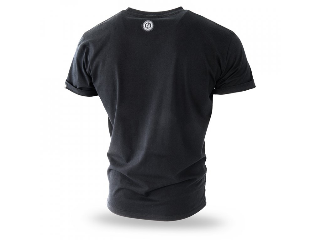 Na levém rukávu je malá cedulka s logem Dobermans Aggressive. Tričko zdobí jemný, ale velice výrazný potisk v podobě nápisu DIVISION OFFENSIVE. Nad nápisem se nachází dvě mýtické bytosti s křídly. Severský znak je uzavřený v kruhu a dodává charakter celku. Na krku je malý potisk ve tvaru kruhu.