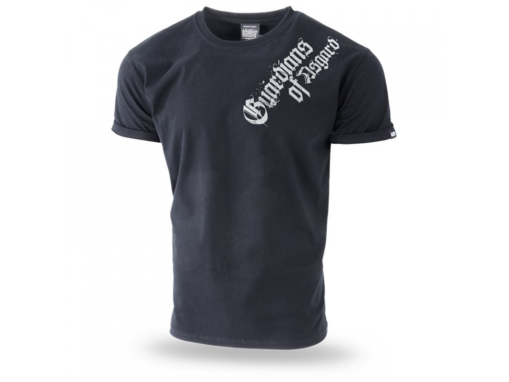 Na levém rukávu je tkaná cedulka s logem značky. Na levé straně hrudi je vytištěný šikmý nápis Guardians of Asgard. Vzor na zádech zabírá téměř celý povrch látky. Vzor z kolekce Vikings se třemi ozbrojenými Vikingy v plné zbroji. Použité gotické písmo a efekt zničení. Oblečení je vyrobeno z vysoce kvalitní bavlny.