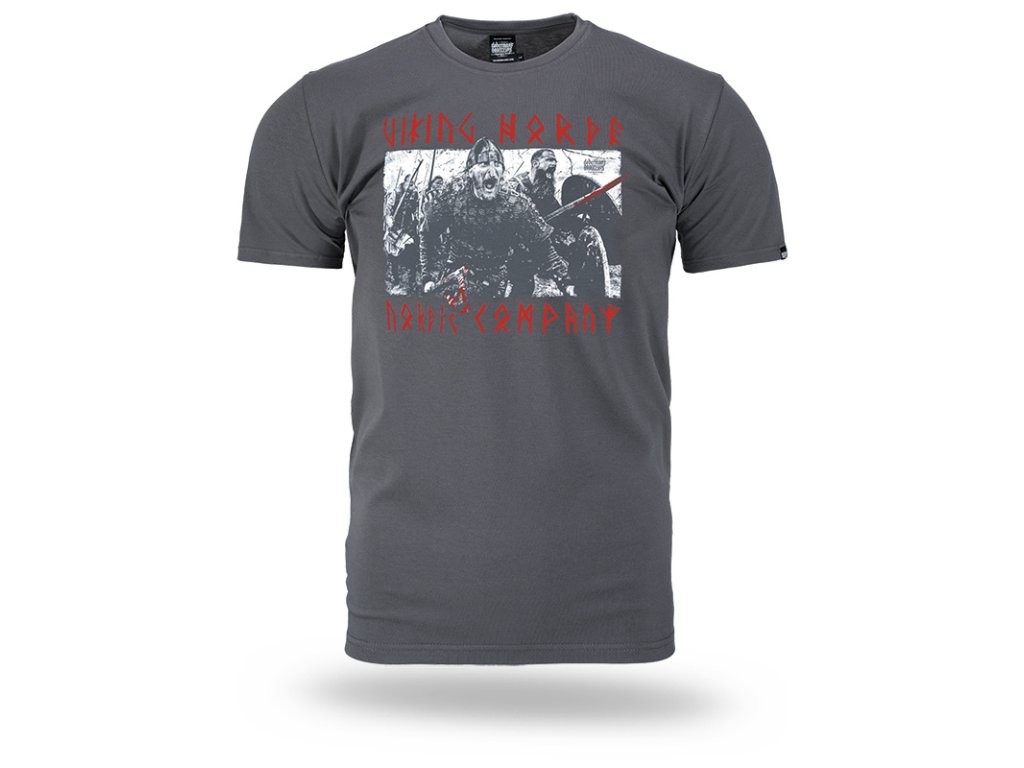 Oblečení je vyrobeno z bavlny o hmotnosti 200g. Na levém rukávu je malá cedulka s logem Doberman’s Aggressive. Na přední straně trička se nachází vzor, který zobrazuje útočící Vikingy spolu s nápisem VIKING HORDE. Na zadní straně je navíc text vytvořený runovými symboly.