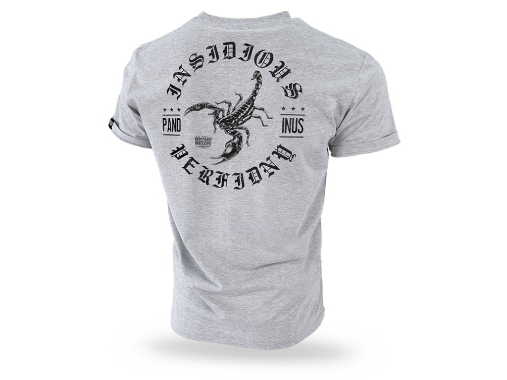 Na levém rukávu je všitá malá cedulka s logem značky. Nový model INSIDIOUS s charakteristickým vzorem na zádech, zobrazuje škorpióna s přidáním gotických nápisů. Na přední straně je menší vzor, který navazuje na zadní stranu trička.