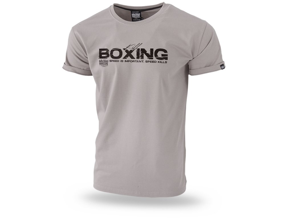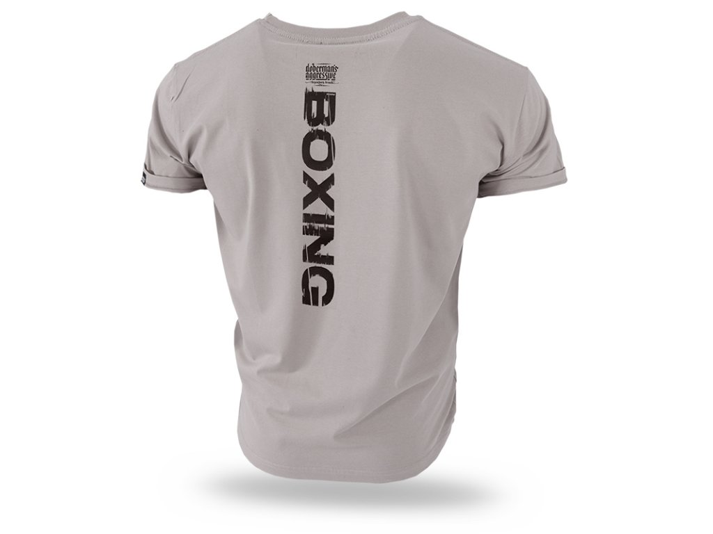 Vyrobeno z bavlny o vysoké hmotnosti. Na levém rukávu je našitá malá cedulka s logem značky. Na přední straně trička je vytištěný velký vzor s nápisem BOXING. Na zadní straně, podél zad se nachází potisk BOXING a logo DOBERMAN’S.