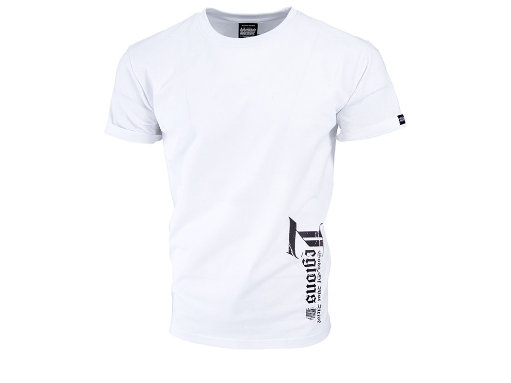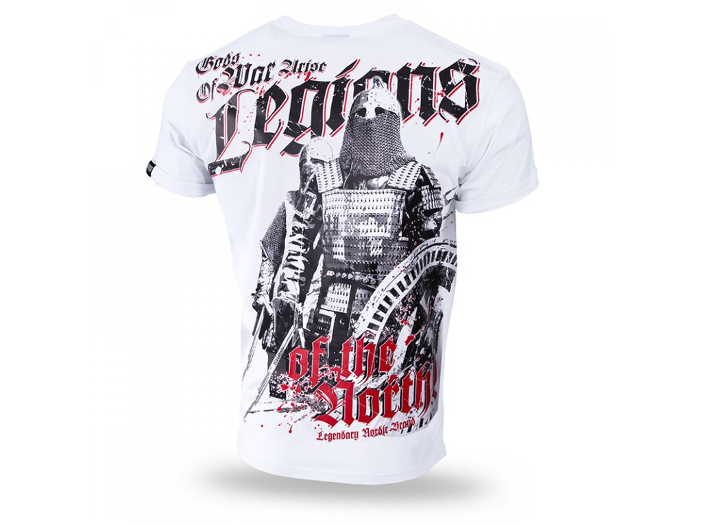 Pod krkem je zakončeno úzkým plisováním. Na levém rukávu je malá cedulka s firemním logem. Na přední straně, u levého okraje trička je potisk s velkým nápisem Legion. Záda jsou téměř celá potištěná. Uprostřed vzoru se nachází dva bojovníci v plné zbroji. Výše je heslo Legions on the North. Vzor ve dvou barvách.