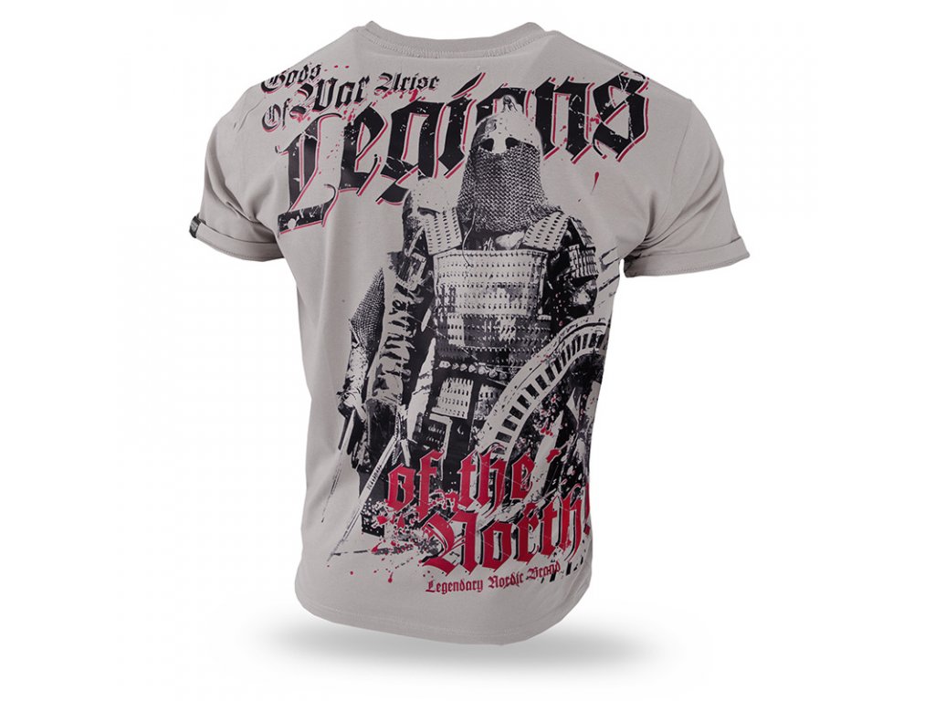 Pod krkem je zakončeno úzkým plisováním. Na levém rukávu je malá cedulka s firemním logem. Na přední straně, u levého okraje trička je potisk s velkým nápisem Legion. Záda jsou téměř celá potištěná. Uprostřed vzoru se nachází dva bojovníci v plné zbroji. Výše je heslo Legions on the North. Vzor ve dvou barvách.