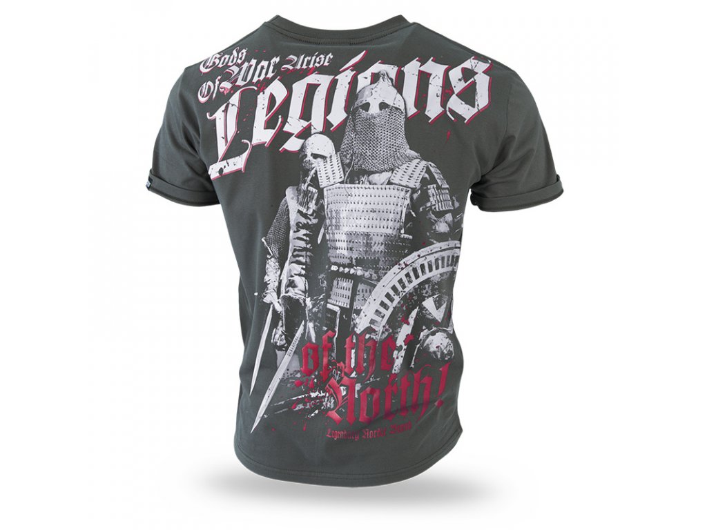 Pod krkem je zakončeno úzkým plisováním. Na levém rukávu je malá cedulka s firemním logem. Na přední straně, u levého okraje trička je potisk s velkým nápisem Legion. Záda jsou téměř celá potištěná. Uprostřed vzoru se nachází dva bojovníci v plné zbroji. Výše je heslo Legions on the North. Vzor ve dvou barvách.