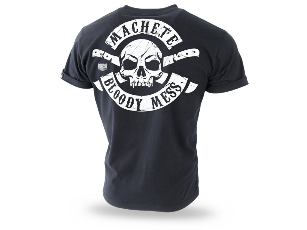 Tričko má krátký rukáv s přišitou cedulkou s logem značky. Na zadní straně trička je velký kruhový potisk, který představuje lebku a nápis MACHETE BLOODY MESS a také menší logo značky DOBERMAN’S. Na levé straně hrudi se opakuje potisk, umístěný vzadu v menším formátu.
