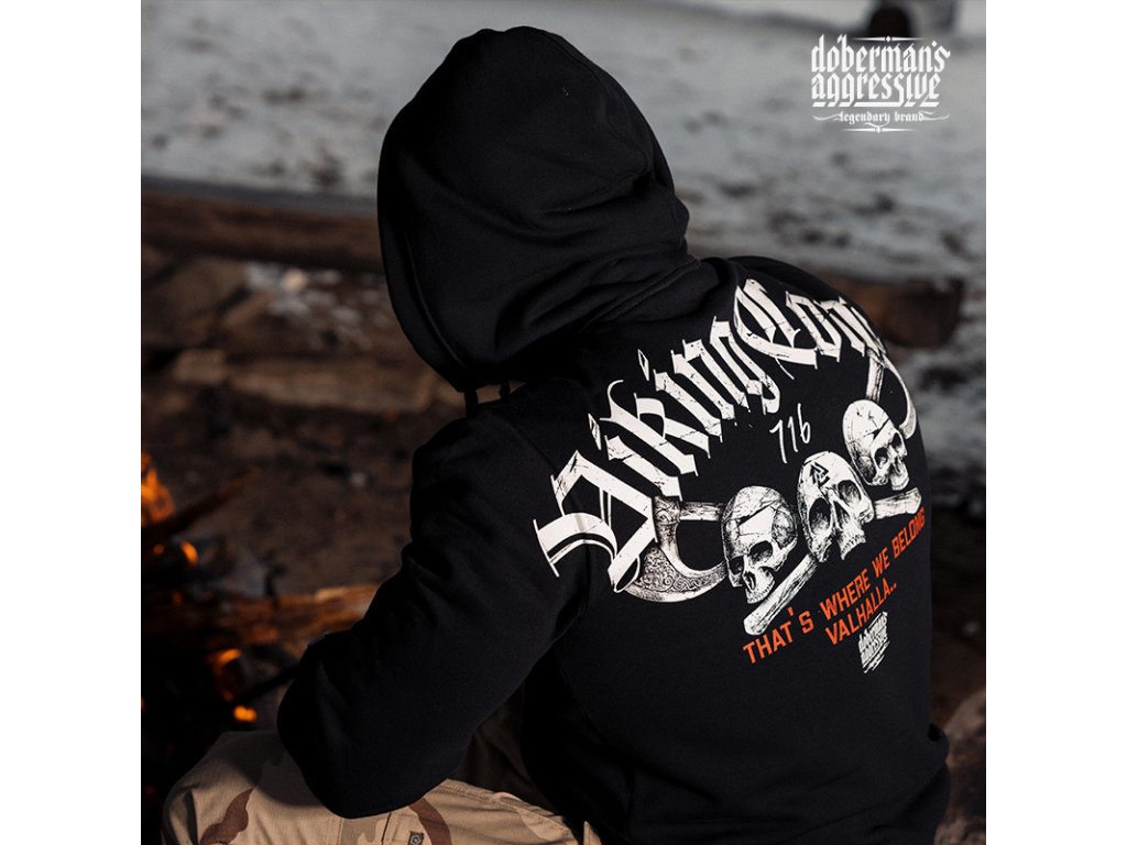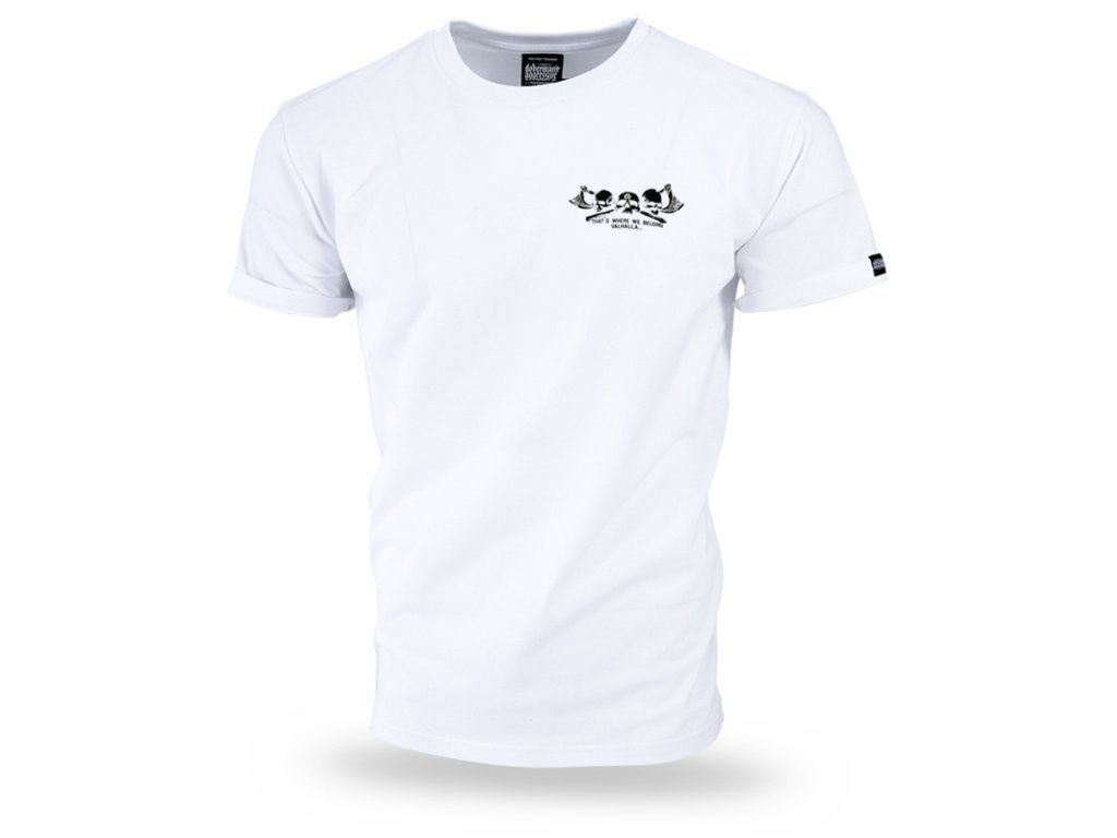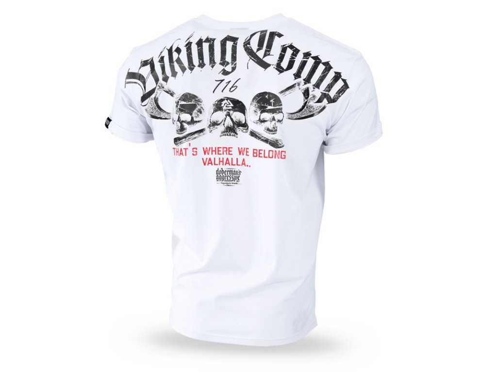 Na levém rukávu je všitá malá cedulka s logem značky. Na zádech je dvojbarevný vzor s nápisem Viking Comp, třema lebkami a sekerami a nápisem „That’s where we belong Valhalla”. Vpředu na levé straně hrudi je miniatura vzoru, který se nachází na zadní straně trička.
