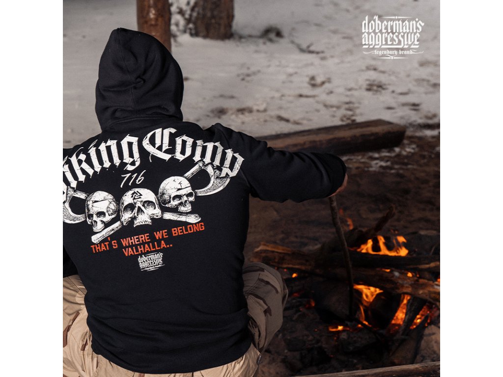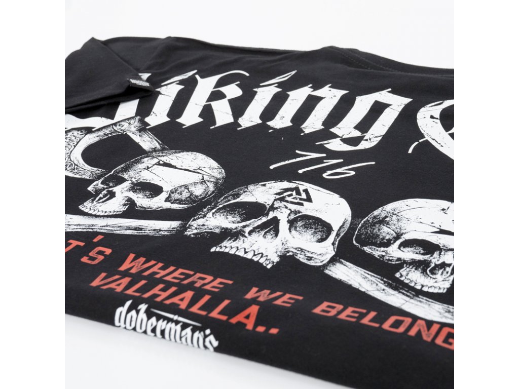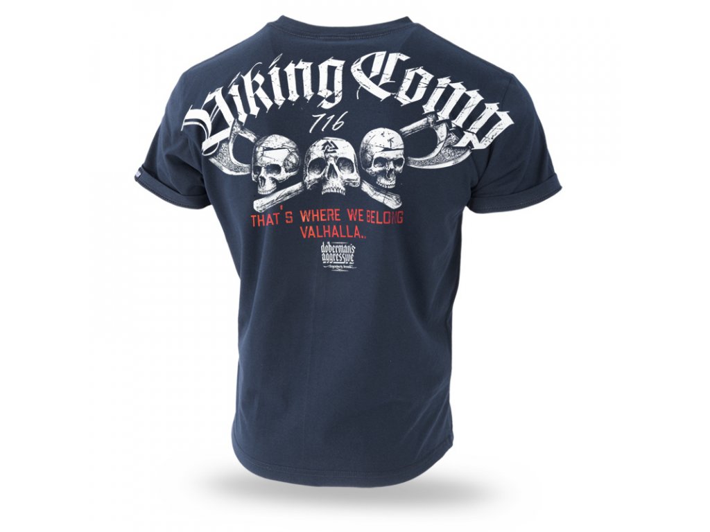 Na levém rukávu je všitá malá cedulka s logem značky. Na zádech je dvojbarevný vzor s nápisem Viking Comp, třema lebkami a sekerami a nápisem „That’s where we belong Valhalla”. Vpředu na levé straně hrudi je miniatura vzoru, který se nachází na zadní straně trička.