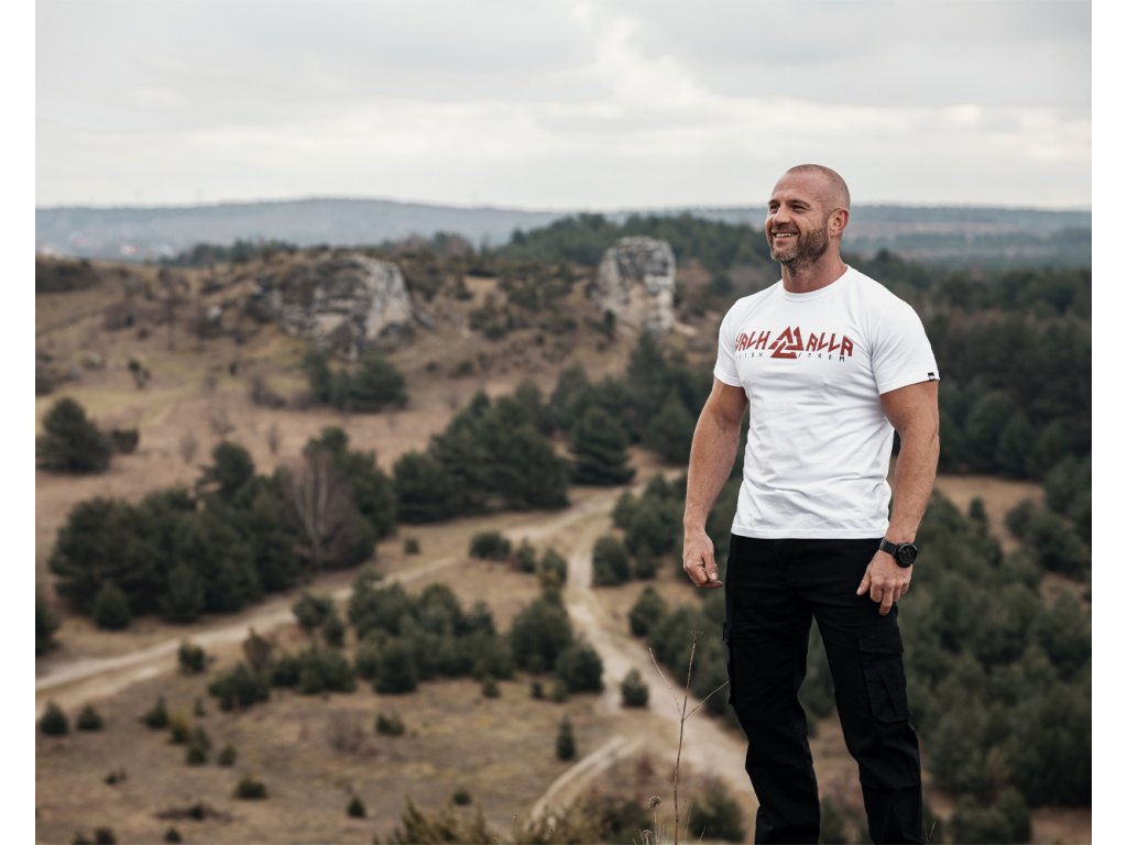Oblečení je vyrobeno z bavlny o hmotnosti 200g. Na levém rukávu je malá cedulka s logem Doberman’s Aggressive. Na přední straně tílka se nachází nápis Valhalla vytvořený vypouklým potiskem. Vzor doplňuje severský symbol.