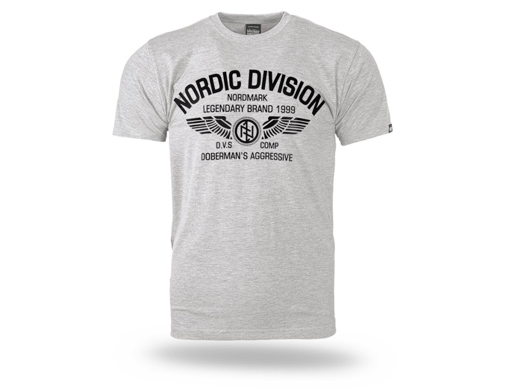 Model vyrobený v pohodlném klasickém střihu, který zajišťuje komfort při každodenním nošení. Na přední straně se nachází velký potisk s nápisem „Nordic Division – Nordmark Legendary Brand 1999“, doplněný grafickým motivem křídel a emblémem značky. Design je inspirován severskou a vojenskou estetikou a zdůrazňuje charakteristický a rozpoznatelný styl značky. Tričko má kulatý výstřih zakončený elastickým nápletem a klasické rukávy, díky čemuž se dobře přizpůsobí postavě a hodí se pro každodenní nošení.