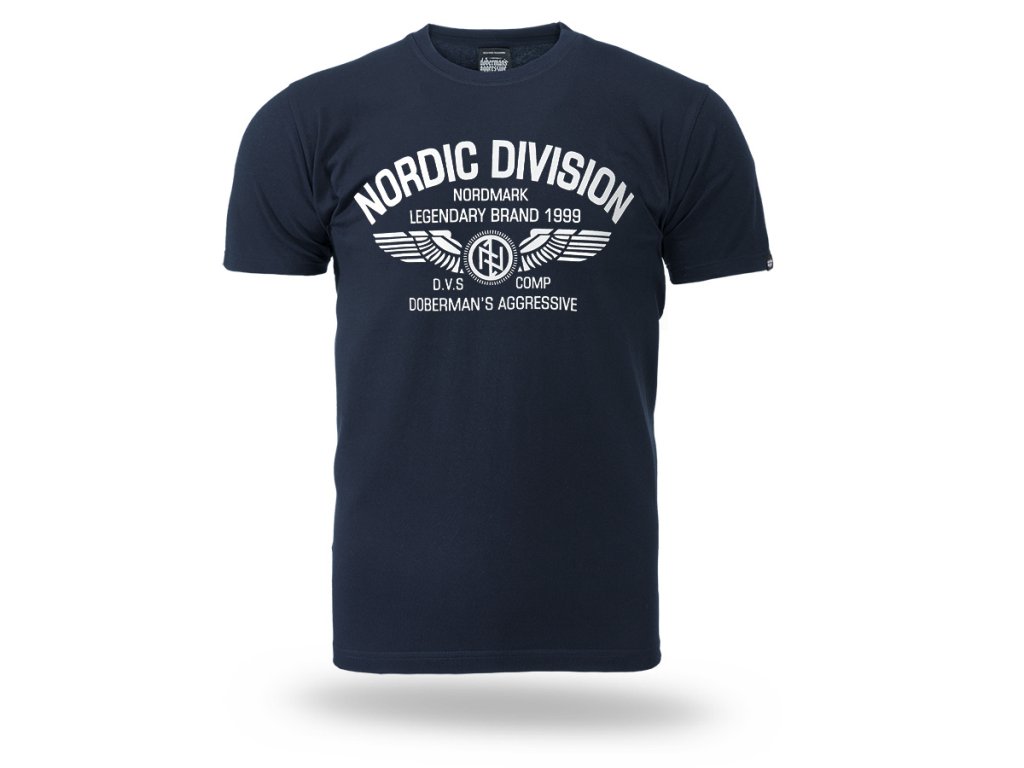 Model vyrobený v pohodlném klasickém střihu, který zajišťuje komfort při každodenním nošení. Na přední straně se nachází velký potisk s nápisem „Nordic Division – Nordmark Legendary Brand 1999“, doplněný grafickým motivem křídel a emblémem značky. Design je inspirován severskou a vojenskou estetikou a zdůrazňuje charakteristický a rozpoznatelný styl značky. Tričko má kulatý výstřih zakončený elastickým nápletem a klasické rukávy, díky čemuž se dobře přizpůsobí postavě a hodí se pro každodenní nošení.