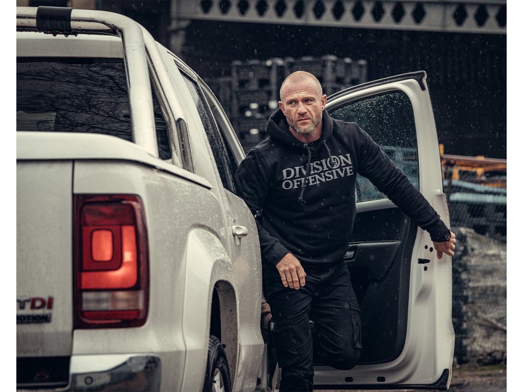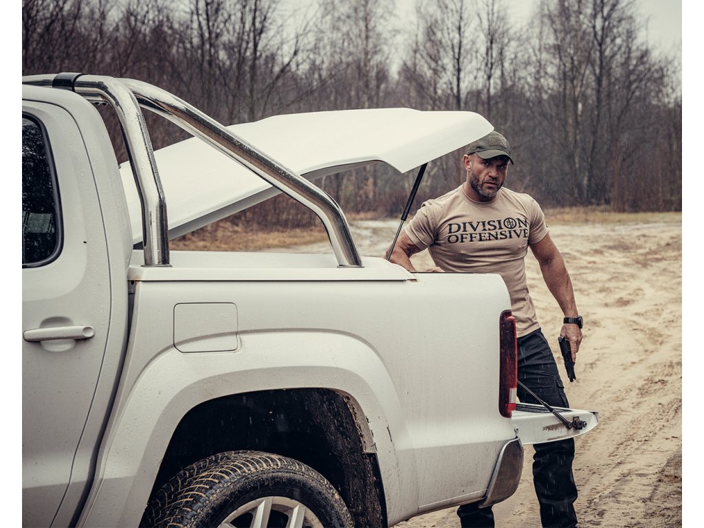 Oblečení je vyrobeno z bavlny o hmotnosti 200g. Na levém rukávu je malá cedulka s logem Doberman’s Aggressive. Na přední straně tička se nachází nápis Offensive Division, který je vytvořený metodou vypouklého potisku.