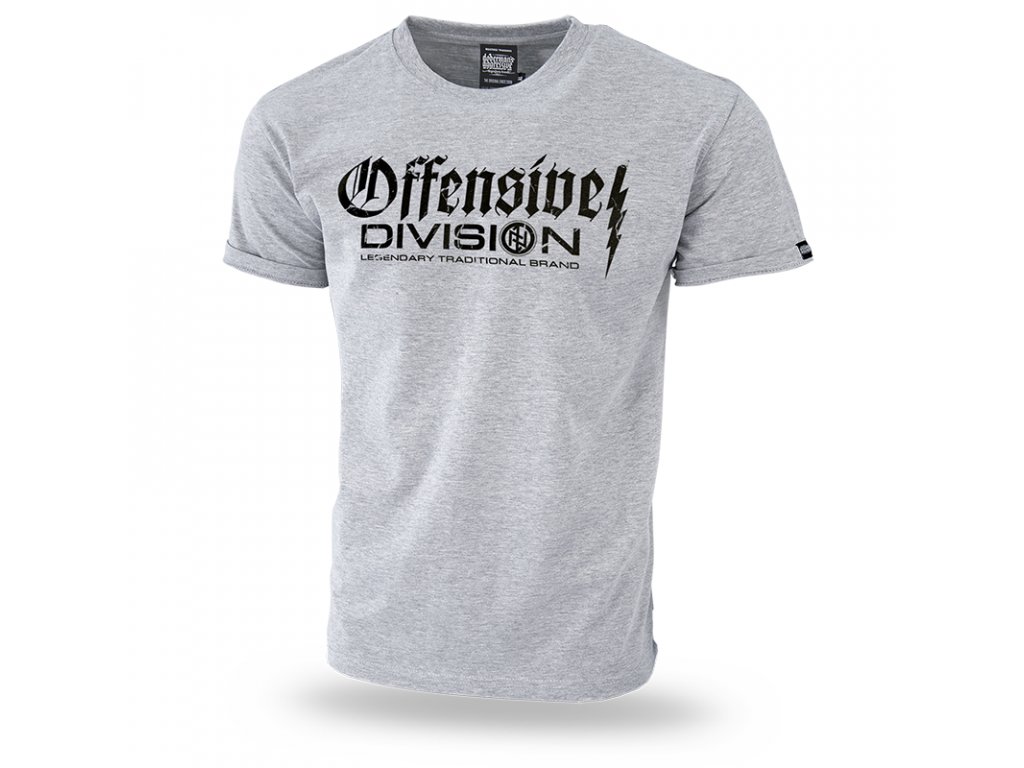 Úzký stahovací lem u krku zlepšuje pohodlí nošení. Tričko je označené cedulkami Dobermans Aggressive. Na hrudi se nachází klasický vzor z řady Offensive. Vzor se skládá ze dvou nápisů. Vedle se nachází blesk. Na zadní straně trička je menší potisk, vzorem je runový znak v kruhu. Použitý efekt poničení potisku.