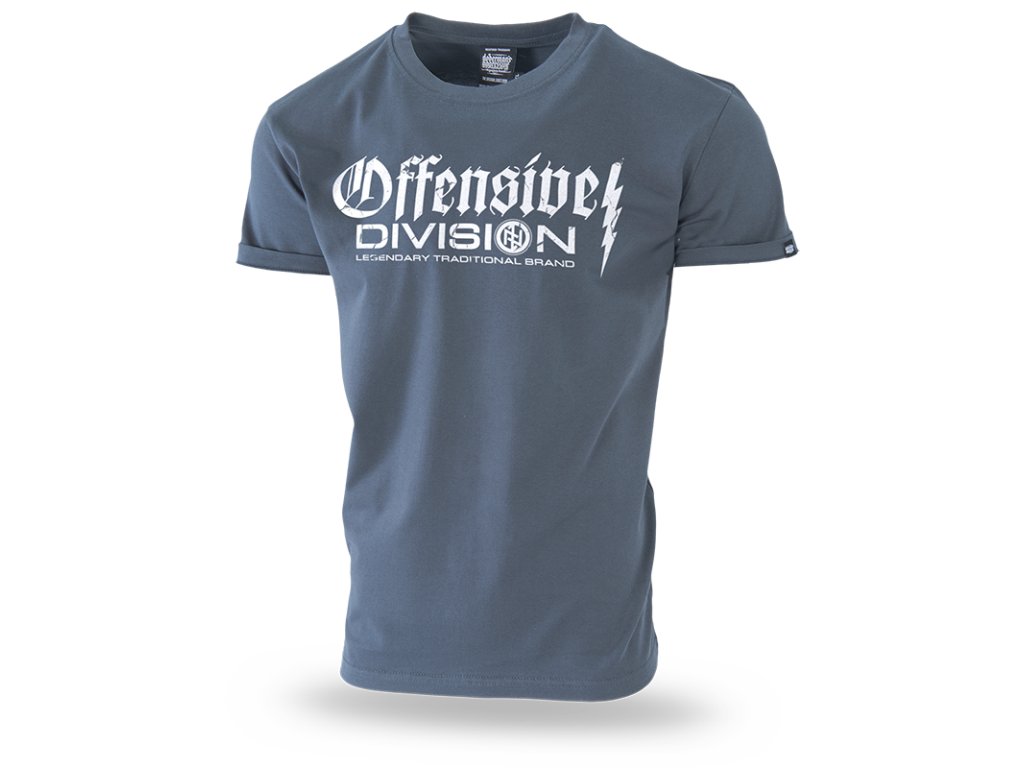 Úzký stahovací lem u krku zlepšuje pohodlí nošení. Tričko je označené cedulkami Dobermans Aggressive. Na hrudi se nachází klasický vzor z řady Offensive. Vzor se skládá ze dvou nápisů. Vedle se nachází blesk. Na zadní straně trička je menší potisk, vzorem je runový znak v kruhu. Použitý efekt poničení potisku.