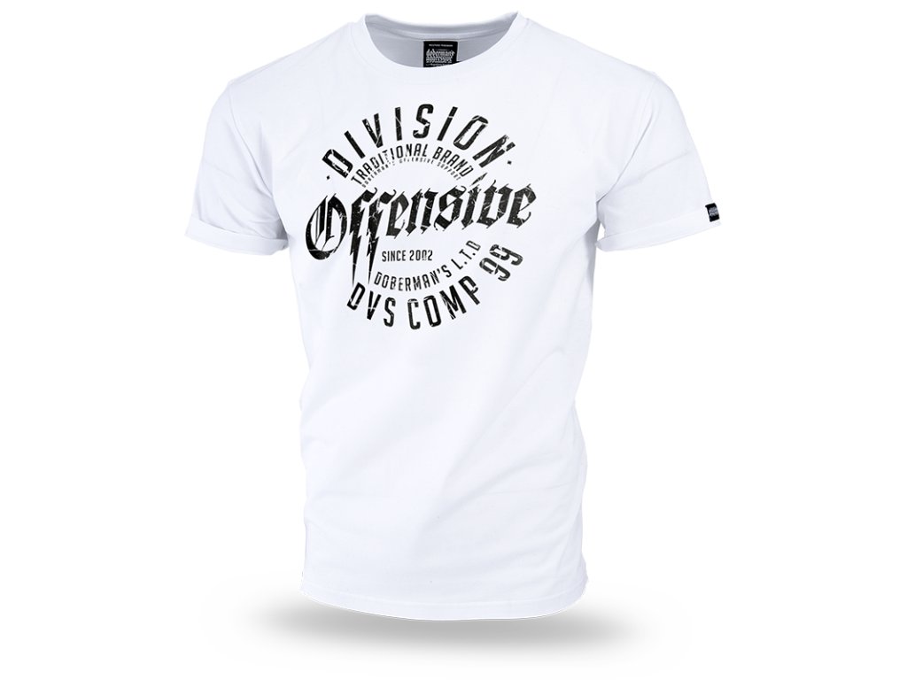 Uprostřed je Offensive vytvořený gotickým písmem. Kolem hesla Division, DVC COMP 99. Vzor v jedné barvě. Na zádech je menší potisk se dvěma blesky. Oblečení je vyrobeno z vysoce kvalitní bavlny o hmotnosti 200g. Tričko s krátkým rukávem klasického střihu. U krku je zakončené úzkým stahovacím lemem, který zlepšuje pohodlí používání.