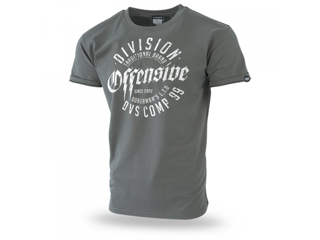 Uprostřed je Offensive vytvořený gotickým písmem. Kolem hesla Division, DVC COMP 99. Vzor v jedné barvě. Na zádech je menší potisk se dvěma blesky. Oblečení je vyrobeno z vysoce kvalitní bavlny o hmotnosti 200g. Tričko s krátkým rukávem klasického střihu. U krku je zakončené úzkým stahovacím lemem, který zlepšuje pohodlí používání.