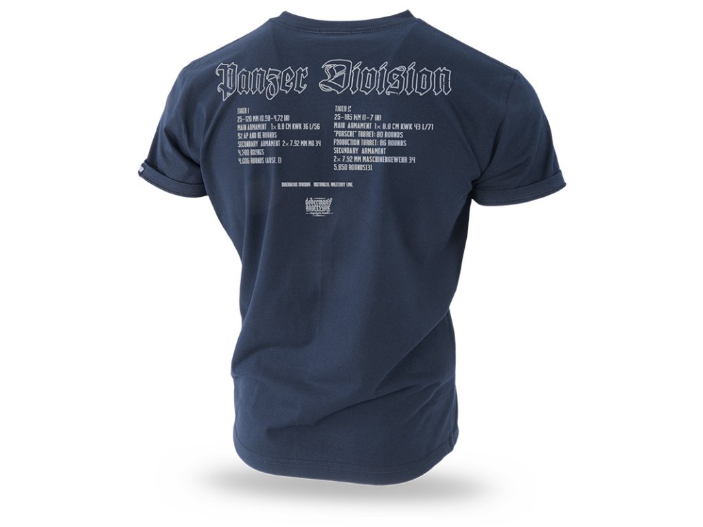 Na přední straně trička je provedený jednobarevný potisk, který zobrazuje tři tanky, které jedou po bitevním poli. Na zadní straně trička je viditelná bojová specifikace vozidel a nápis Panzer Division. Vzor byl navržen s použitím gotického písma a efektu poničení. Tričko je u krku zakončeno stahovacím lemem. Model je vyroben z bavlny o hmotnosti 200 g. Vzor z historické kolekce.