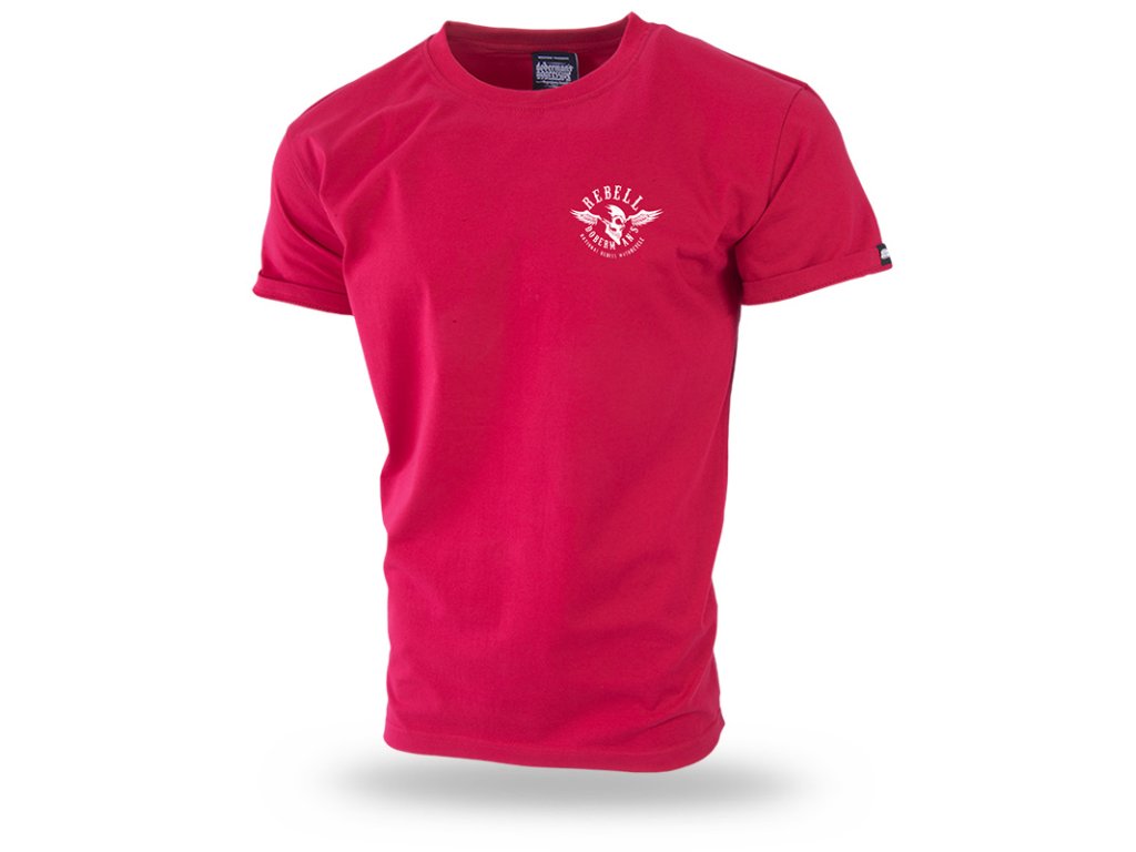 Na zádech se nachází vzor, který zabírá značný povrch výrobku: lebka s křídly, kolem které je velký dvoubarevný nápis Rebell Doberman's a také blesky. Níže je nápis National Rebelle Support. Použitý efekt popraskání potisku. Vzor se opakuje na přední straně trička v menším měřítku a jednotné barvě. Tričko v motorkářském stylu, vyrobené z bavlny o vysoké hmotnosti (200g). Má standardní pánský střih se stahovacím lemem u krku. Uvnitř je červené lemování, na boku štítek s logem značky.