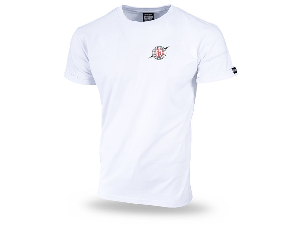 Vysoce kvalitní tričko s dvoubarevným vzorem v podobě razítka. Na hrudi nevelký potisk s runovým znakem a dvěma blesky.