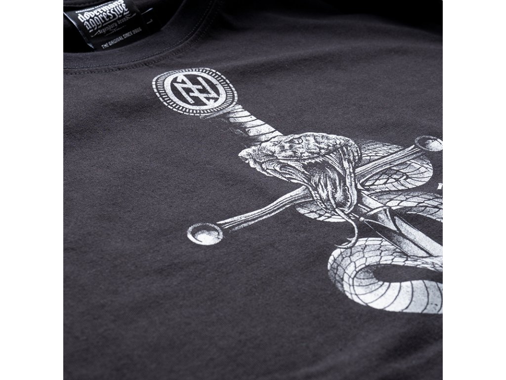 Oblečení je vyrobeno z bavlny o hmotnosti 200g. Na levém rukávu je malá cedulka s logem Doberman’s Aggressive. Na přední straně tílka je podoba hada, který obtáčí meč. Vzor doplňuje dopisek The Serpent’s Trail.