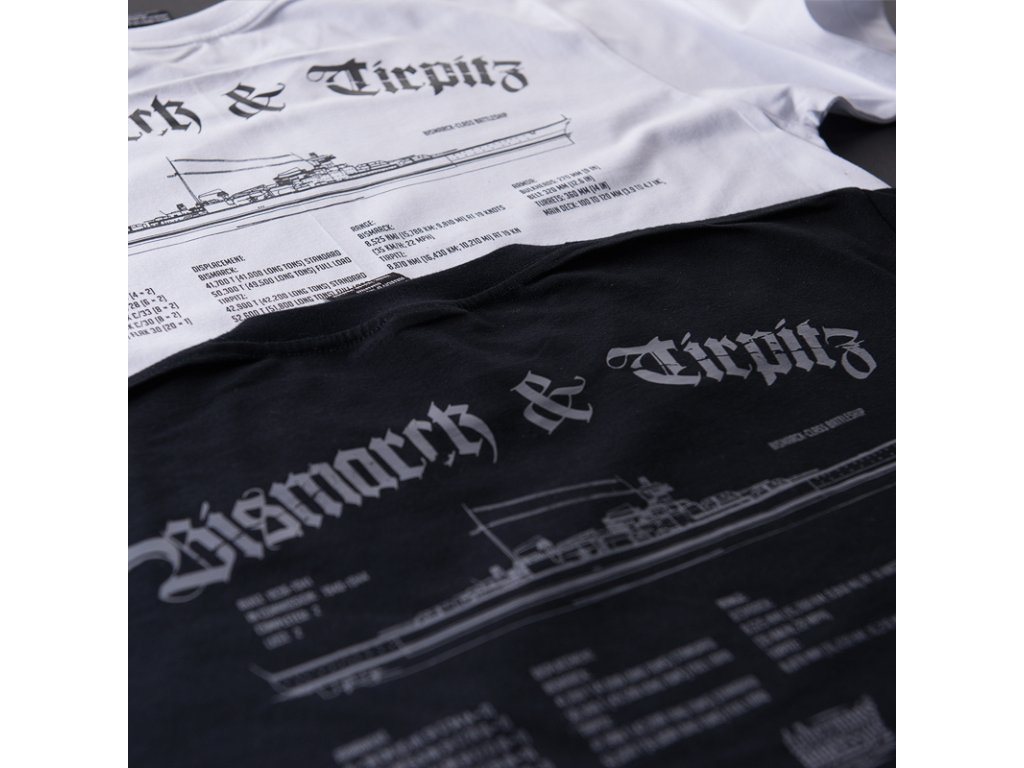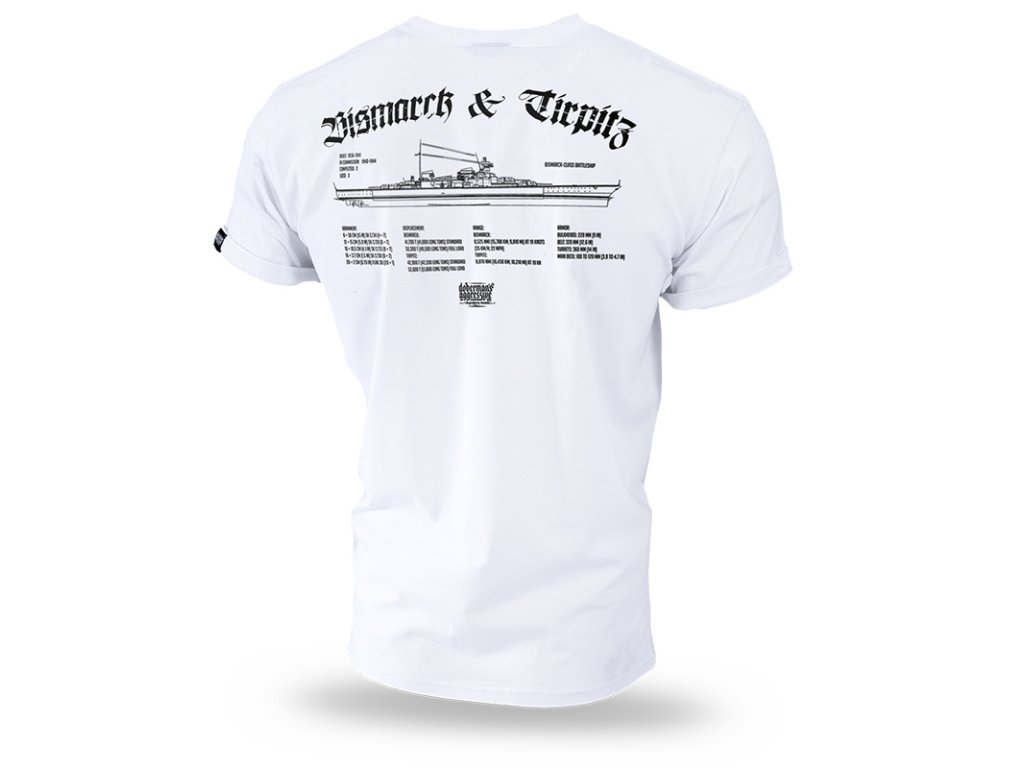 Vzor na přední straně zobrazuje lodě z 2. světové války v akci. Historická tematika vzoru je doplněná hesly The Battleship a Bismarck & Tirpitz v gotickém stylu, pod jednoduchým vzorem se nachází průřez děly s krátkým popisem. Zatímco na zádech - technický výkres plavidla a celá specifikace lodí třídy Bismarck: Bismarck & Tirpitz. Nad celkem je nápis, který navazuje na vzor z přední strany, dole je logo Doberman’s Aggressive. Dále je na rukávu malá cedulka se stejným logem.