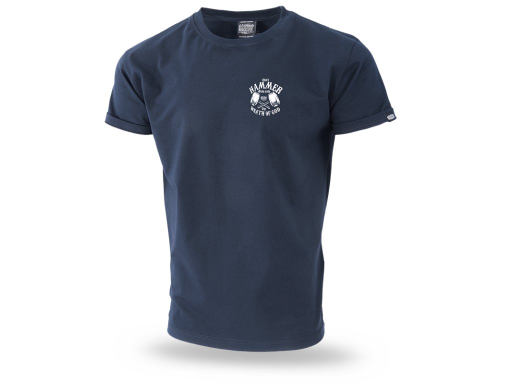 Na zadní straně trička je potisk, který představuje zkřížená THOROVA kladiva a nápis HAMMER WRATH OF GOD a menší logo značky DOBERMAN’S. Na levé straně hrudi se opakuje potisk, umístěný vzadu v menším formátu.