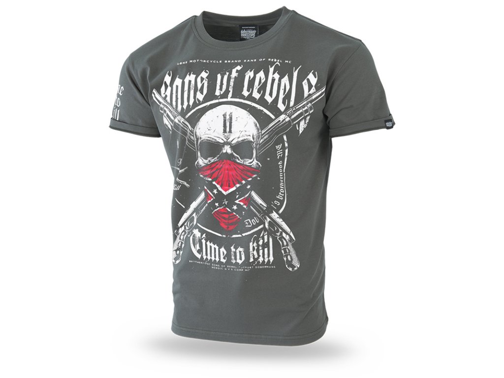 Je součástí kolekce SONS OF REBEL s originálním vzorem, který je umístěný na přední straně trička a zobrazuje hesla Sons of Rebel a Time to Kill, mezi nimi je lebka v konfederační čepici a za ní dvě brokovnice. Všechny nápisy na tričku jsou vytvořeny v gotickém stylu, také ty umístěné na rukávu: Time to Kill a Doberman’s Aggresive.