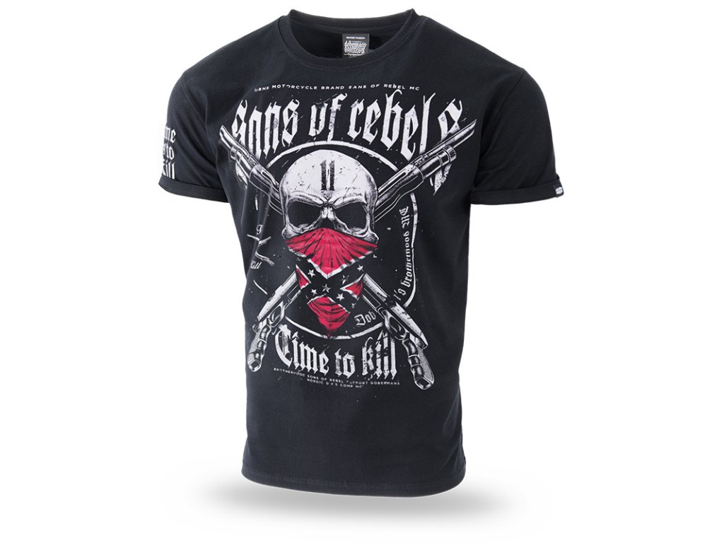 Je součástí kolekce SONS OF REBEL s originálním vzorem, který je umístěný na přední straně trička a zobrazuje hesla Sons of Rebel a Time to Kill, mezi nimi je lebka v konfederační čepici a za ní dvě brokovnice. Všechny nápisy na tričku jsou vytvořeny v gotickém stylu, také ty umístěné na rukávu: Time to Kill a Doberman’s Aggresive.