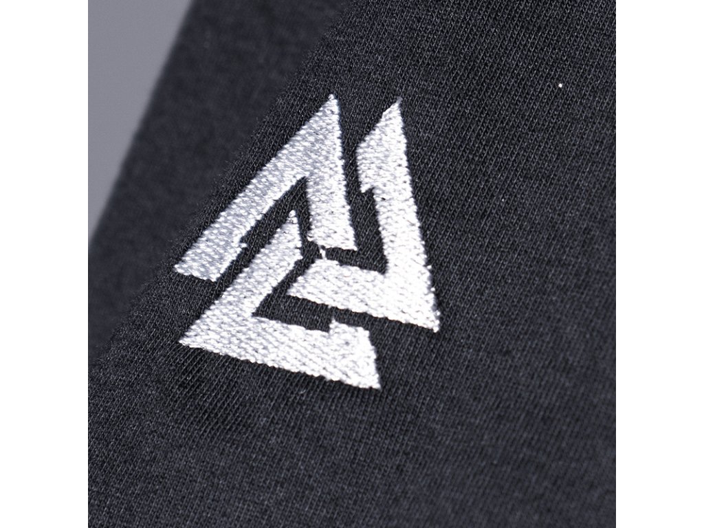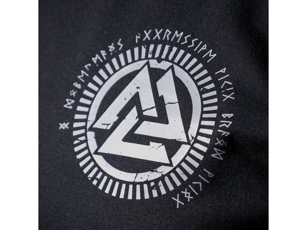 Na pravém rukávu je vyšitý runový znak Valknut, spojený se severskou mytologií, který označuje padlé s mečem v ruce. Na levé straně hrudi je symbol Valknut v podobě potisku s efektem poničení. Na zádech je velký nápis v gotickém stylu a rozzuřený vlk s otevřenou tlamou.