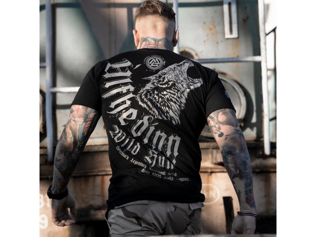 Na pravém rukávu je vyšitý runový znak Valknut, spojený se severskou mytologií, který označuje padlé s mečem v ruce. Na levé straně hrudi je symbol Valknut v podobě potisku s efektem poničení. Na zádech je velký nápis v gotickém stylu a rozzuřený vlk s otevřenou tlamou.