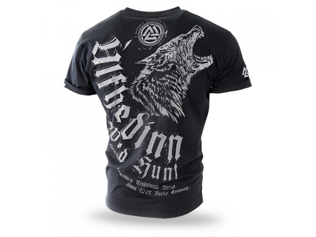 Na pravém rukávu je vyšitý runový znak Valknut, spojený se severskou mytologií, který označuje padlé s mečem v ruce. Na levé straně hrudi je symbol Valknut v podobě potisku s efektem poničení. Na zádech je velký nápis v gotickém stylu a rozzuřený vlk s otevřenou tlamou.