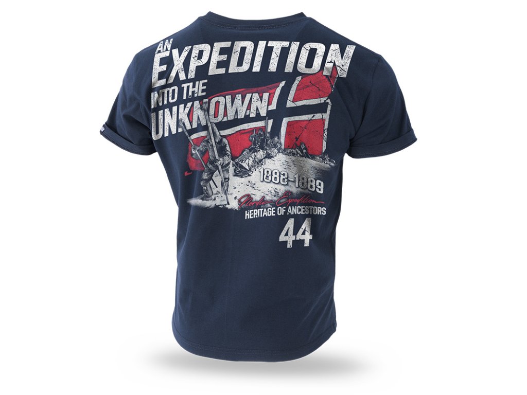 Na levém rukávu je malá cedulka s logem značky Dobermans Aggressive. Oblečení je vyrobeno z vysoce kvalitní bavlny o hmotnosti 200g. Na levé straně hrudi je vzor s norskou vlajkou. Zadní strana trička představuje potisk s vytrvalými cestovateli ve sněhu. Vzor navazuje na dobrodružný styl řady Expedition. Vzor je navržený na základě historických událostí.