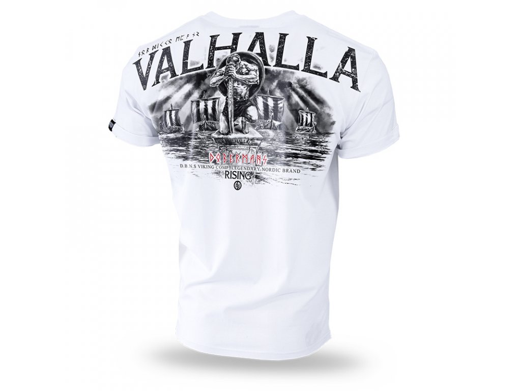 Tričko je u krku zakončené úzkým stahovacím lemem, který zvyšuje pohodlí nošení. Na levé straně hrudi je nevelký nápis Valhalla a runový symbol. Záda jsou do značné míry pokrytá potiskem. Vzor zobrazuje majestátního bojovníka na podstavci. Naklání se a opírá o meč. Za ním je viditelná vikingská flotila. Výše se nachází velký nápis Valhalla a runové symboly. Vzor navazuje na řadu Vikings.