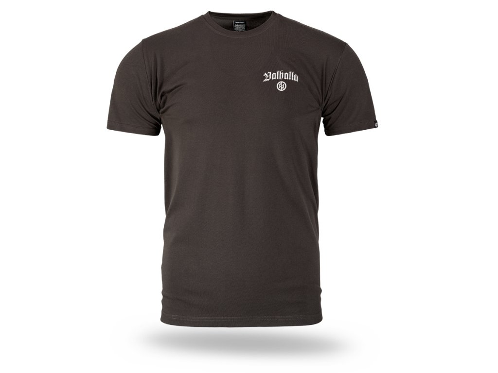 Model s kulatým výstřihem zakončeným žebrovaným lemem, který zajišťuje pohodlné nošení a volnost pohybu. Na levé straně hrudi se nachází malé logo „Valhalla“ s grafickým symbolem. Zadní stranu zdobí velký, výrazný potisk inspirovaný severskou mytologií – s motivem válečníka a výraznou typografií „Valhalla“. Design doplňují slogany odkazující na odvahu, čest a boj, které podtrhují syrový, válečnický charakter kolekce.